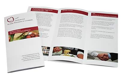 Grafisk form och produktion av presentationsfoldrar på svenska och engelska.